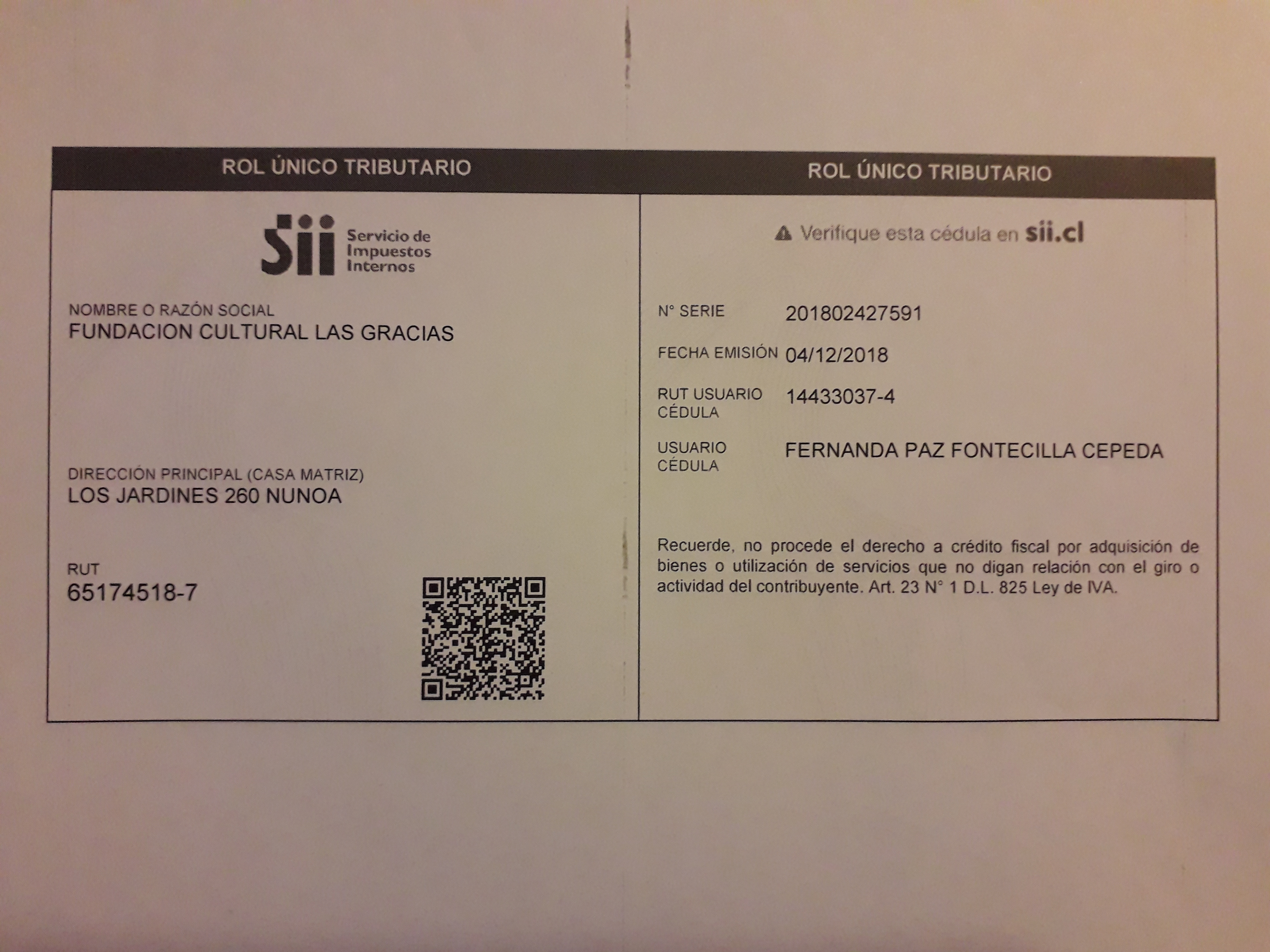 | Dirección | LOS JARDINES 260 ÑUÑOA |
